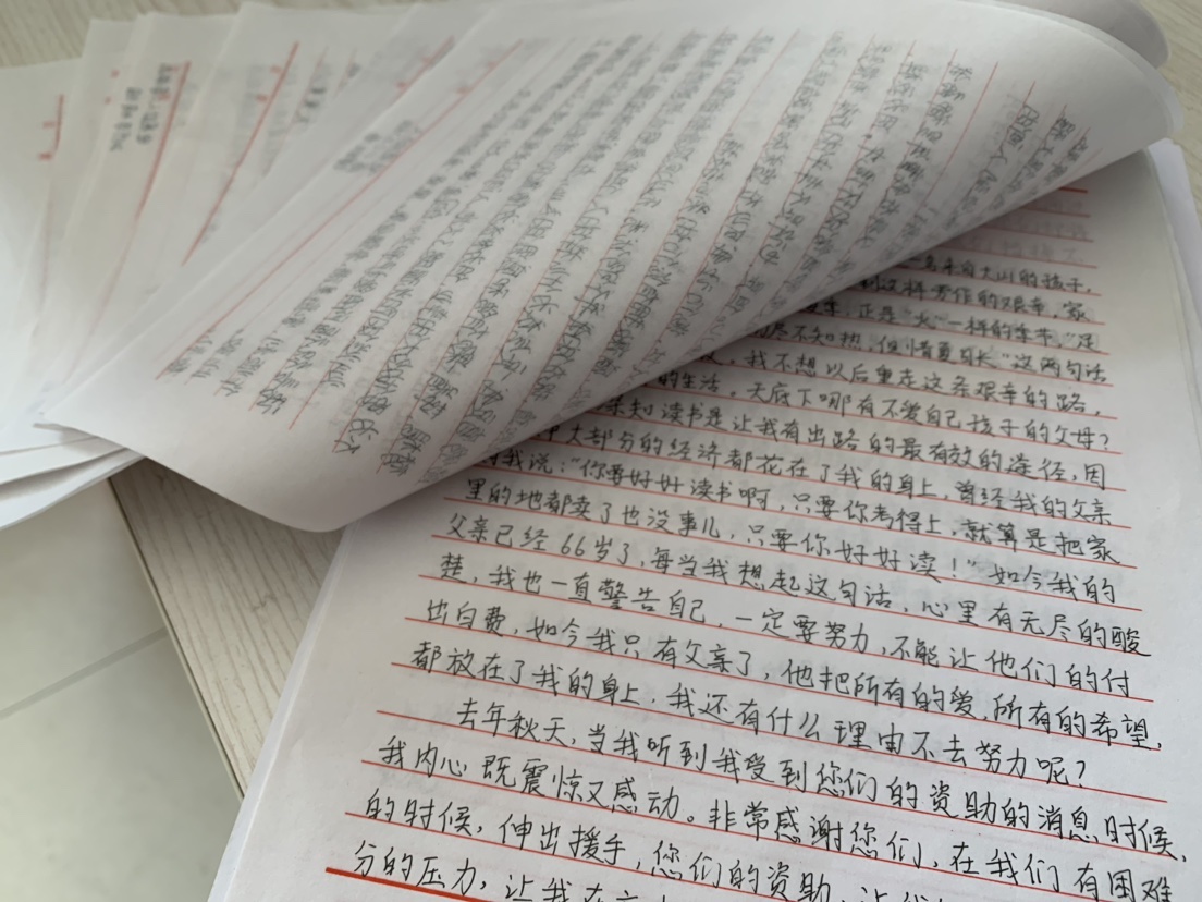 这些都是我公司每学期从高一直至大学毕业循环资助的“贵州独山高级中学”学生们写来的。