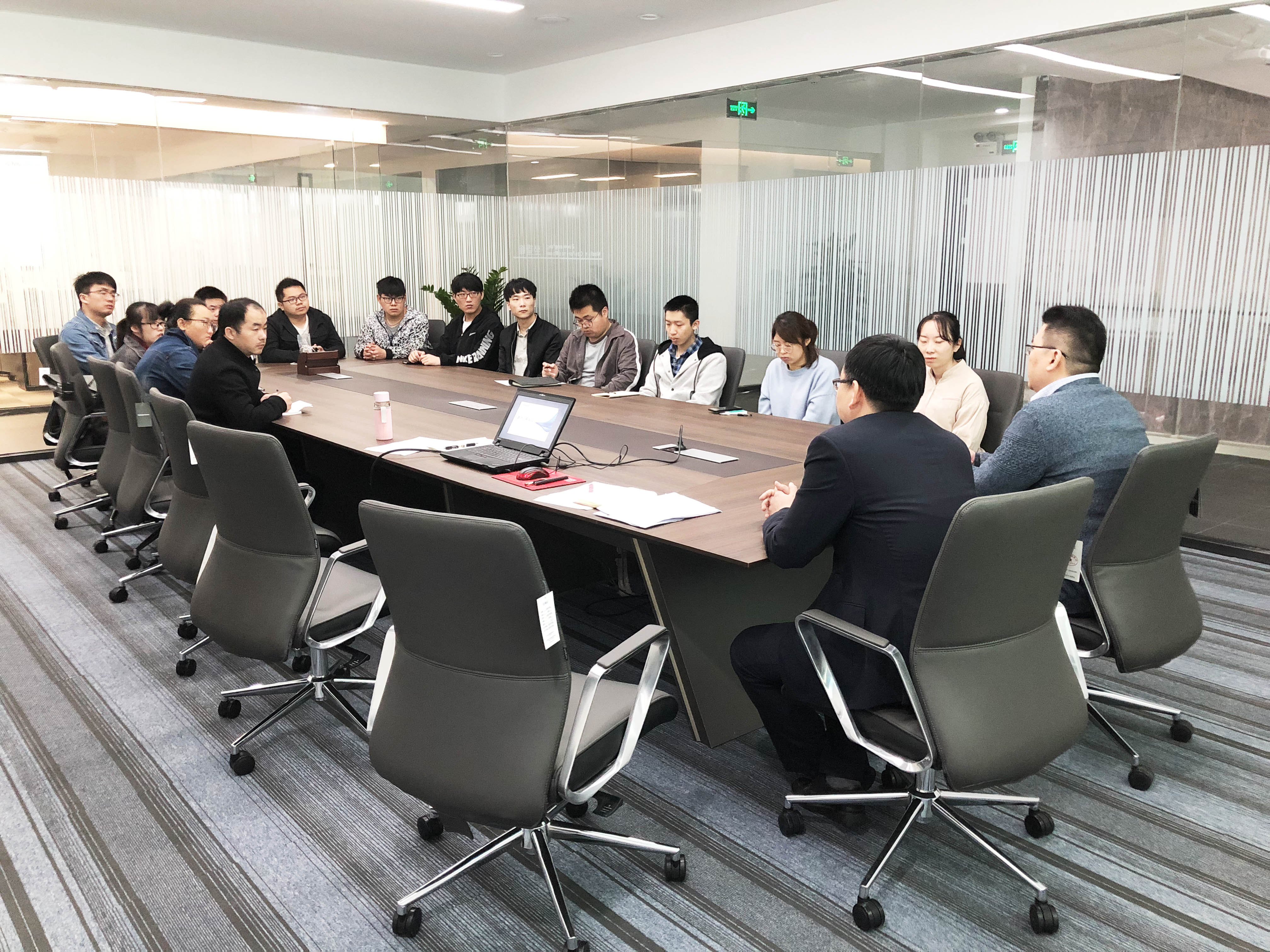4月29日上午在公司新综合楼二楼会议室召开新员工座谈会,总经理刘郁甫、人力资源行政中心总监张国强出席了此次座谈会。本月入职的新员工、人力资源部的同事共18余人到场参会。4月29日上午在公司新综合楼二楼会议室召开新员工座谈会,总经理刘郁甫、人力资源行政中心总监张国强出席了此次座谈会。本月入职的新员工、人力资源部的同事共18余人到场参会。