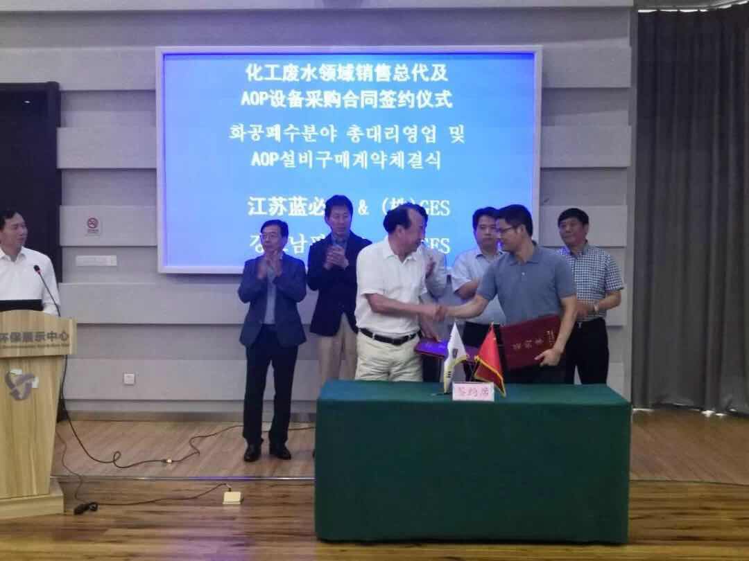 活动中,我公司就臭氧处理系统(AOP)合作项目,与韩国GE环境建设签订化工废水领域销售总代协议。进一步提升了我公司对化工废水进行深度处理的能力。