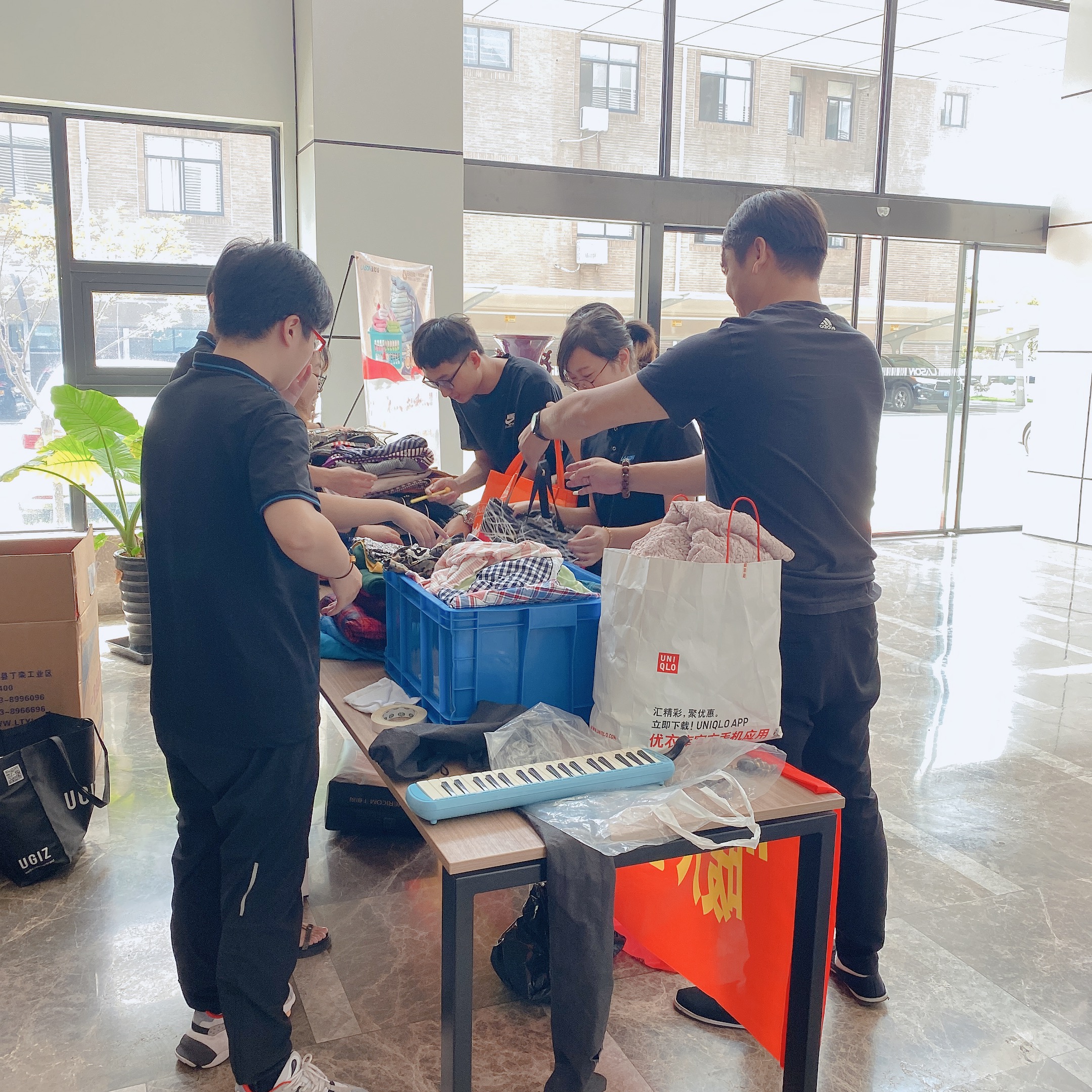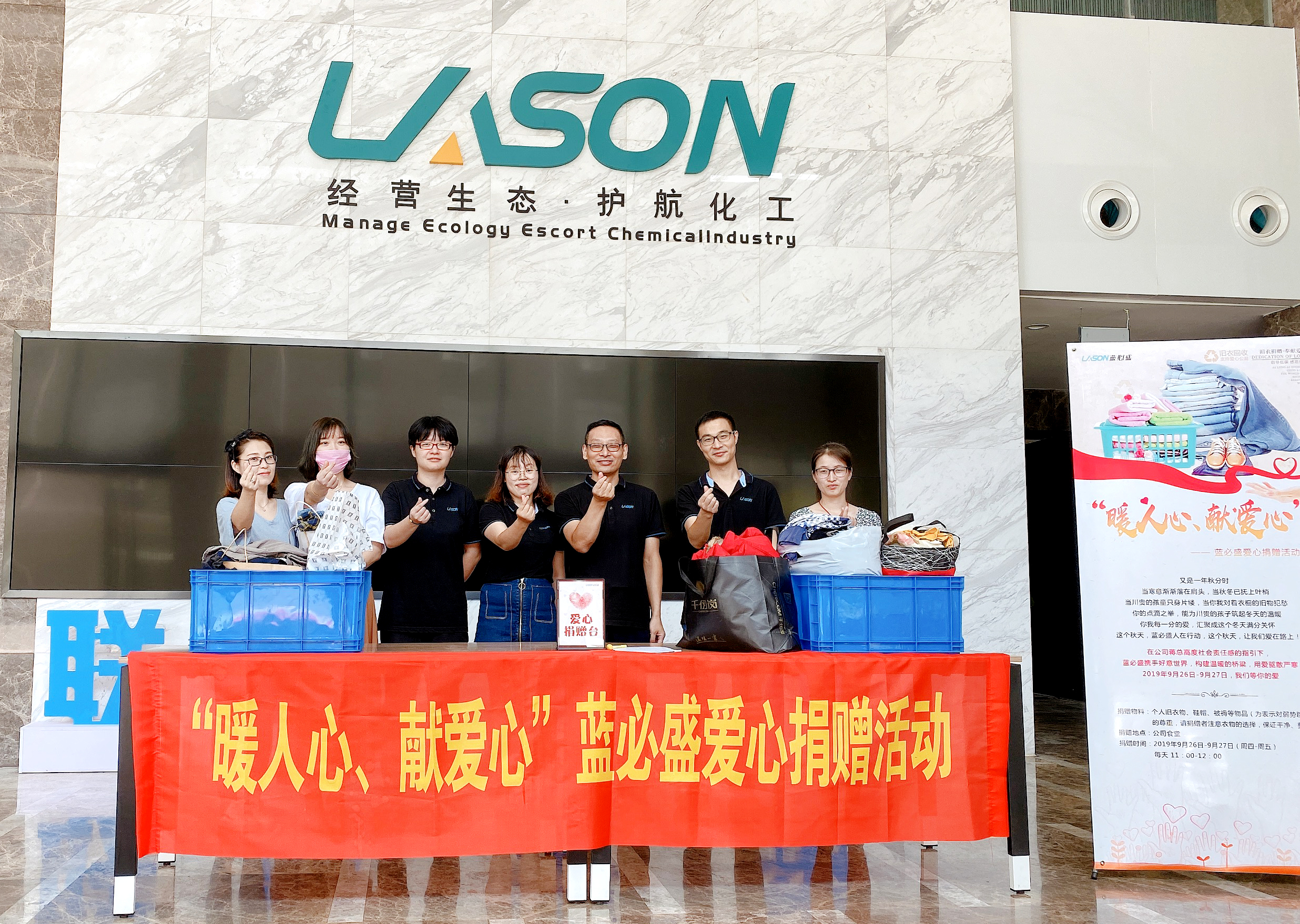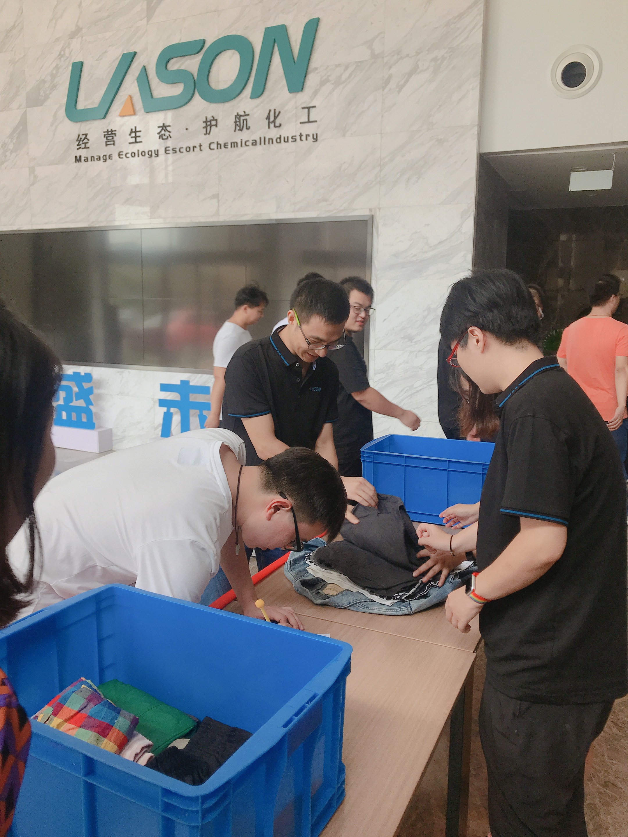 大爱无疆,点滴汇聚,在祖国70周年国庆来临之际,为了让祖国的生日更有意义,为了让2019年的冬天不再寒冷,9月26日中午,“暖人心、献爱心”蓝必盛爱心捐赠活动在综合楼门口拉开帷幕,来自公司各中心五十多号人参与了本次活动,让家中的旧衣物发挥更大的作用,传递来自蓝必盛人的一份爱。