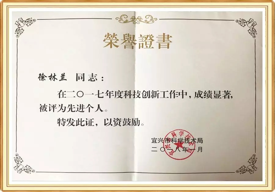 三、江苏蓝必盛化工环保股份有限公司副总经理徐林兰荣获“科技创新先进个人”称号。