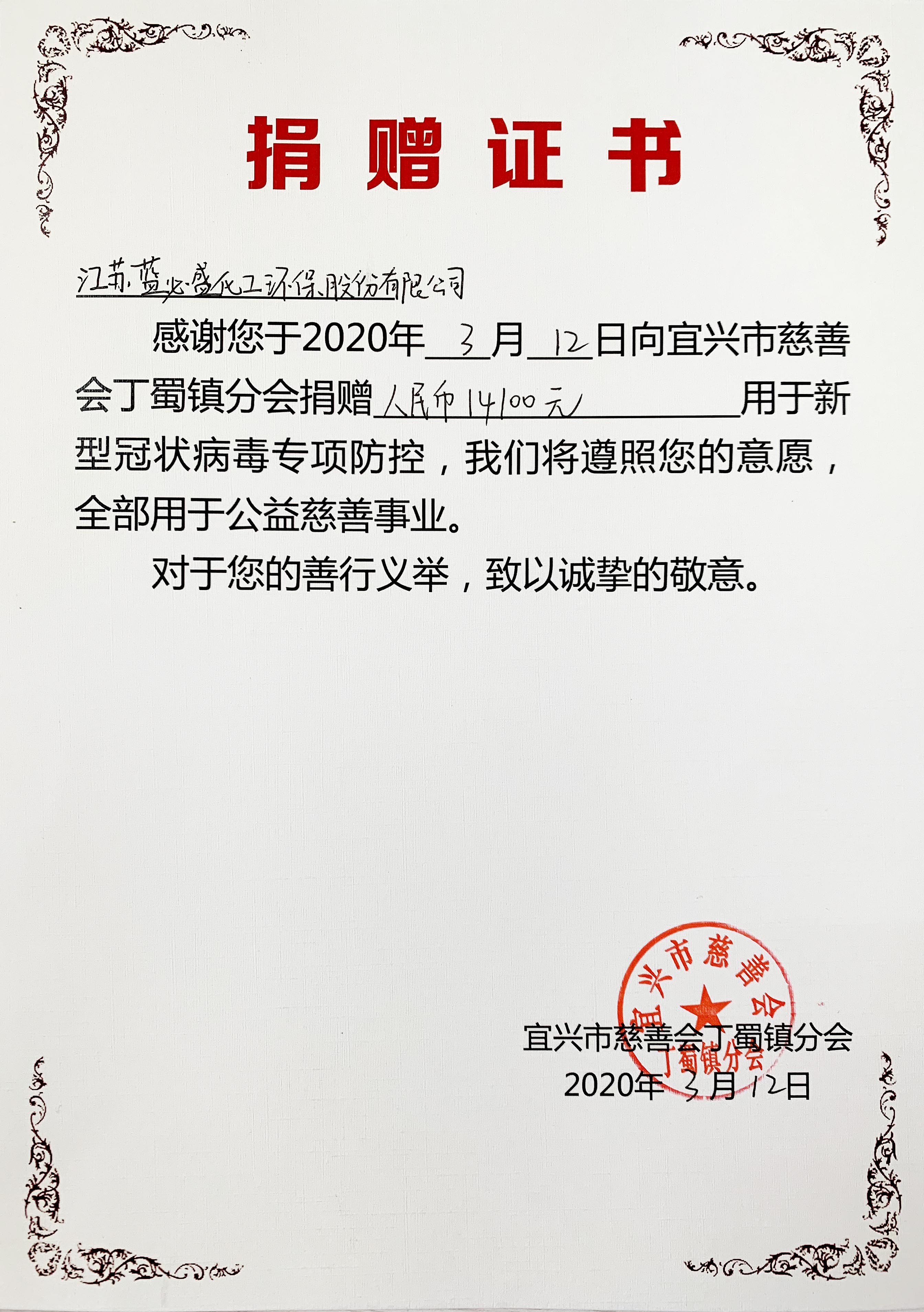 3月9日至3月10日,蓝必盛发起“守望相助,共抗疫情”爱心捐款活动,公司员工积极响应,纷纷伸出援助之手,自愿贡献力量,为抗击疫情、挽救生命贡献一己之力。短短2天时间,共收到爱心捐款14100元。3月12日全部捐款已交由宜兴市慈善会签收,将用于疫情救治防控一线添置相关医疗设备、防护用品及医务人员的有关生活保障等。