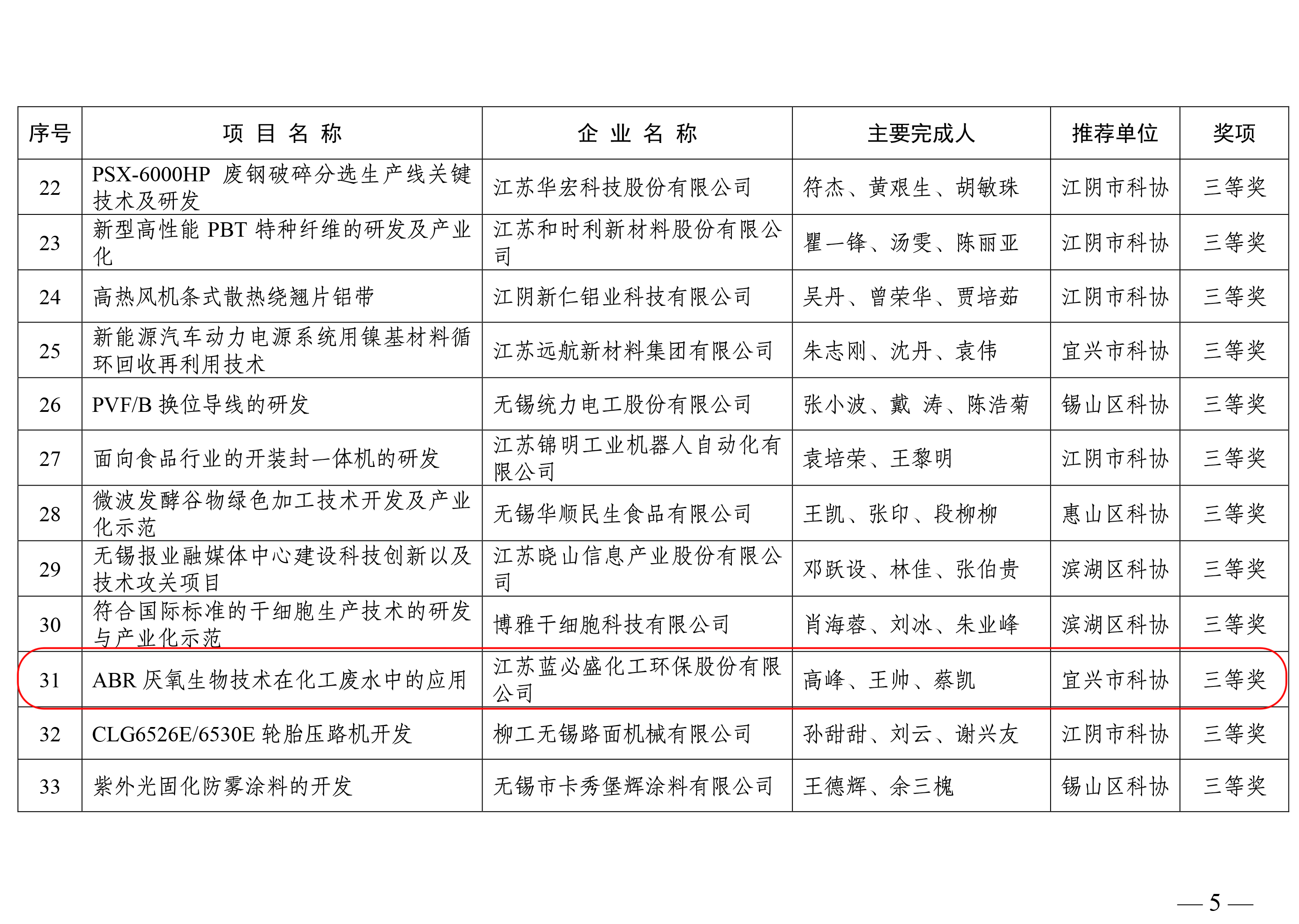 近期,在无锡市科协举办的2019年度“讲理想,比贡献”活动中,蓝必盛化工环保技术研究院院长高峰、副院长王帅、生物研究所所长蔡凯主持的项目“ABR 厌氧生物技术在化工废水中的应用”喜获优秀项目三等奖。