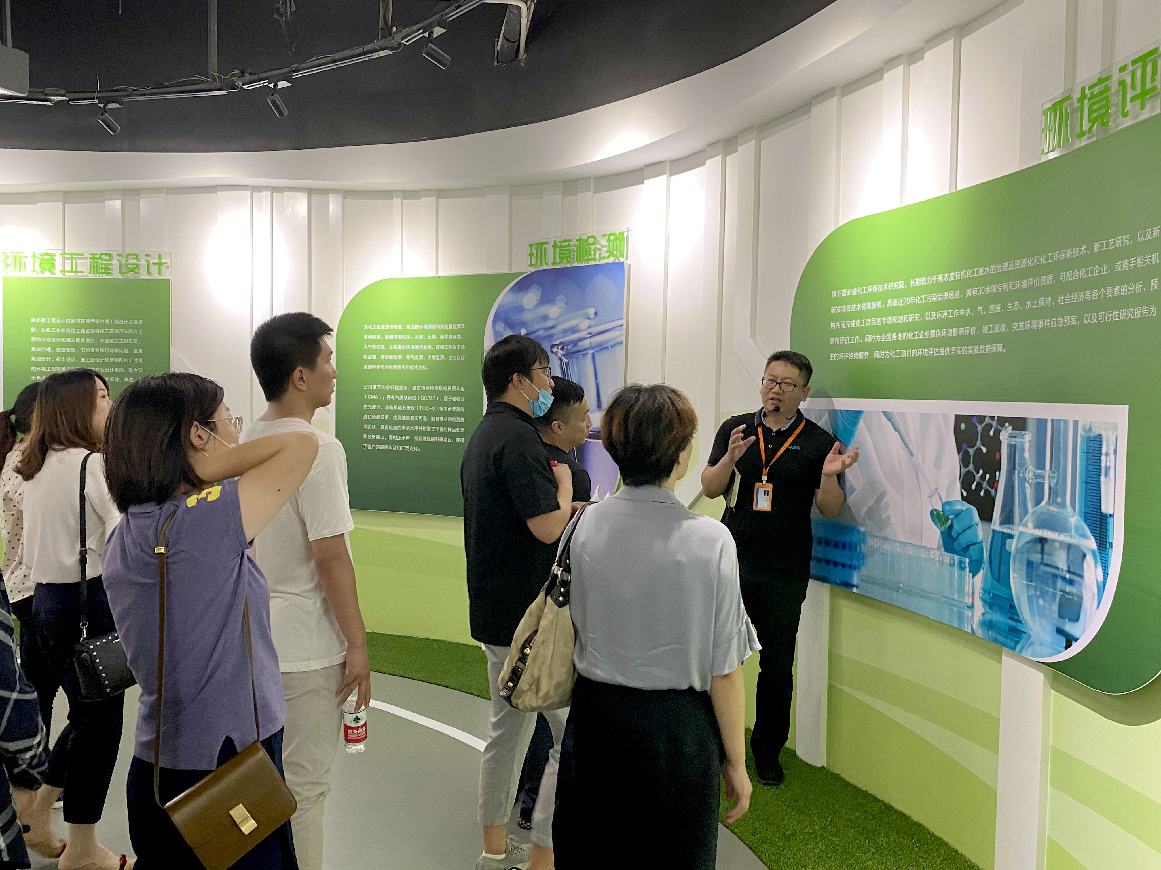 来访嘉宾先后参观了蓝必盛研究院和综合楼,通过高峰的精彩、细致的讲解,对蓝必盛行业技术优势、各类荣誉资质及取得的丰硕成果纷纷啧啧称道、赞叹不已。