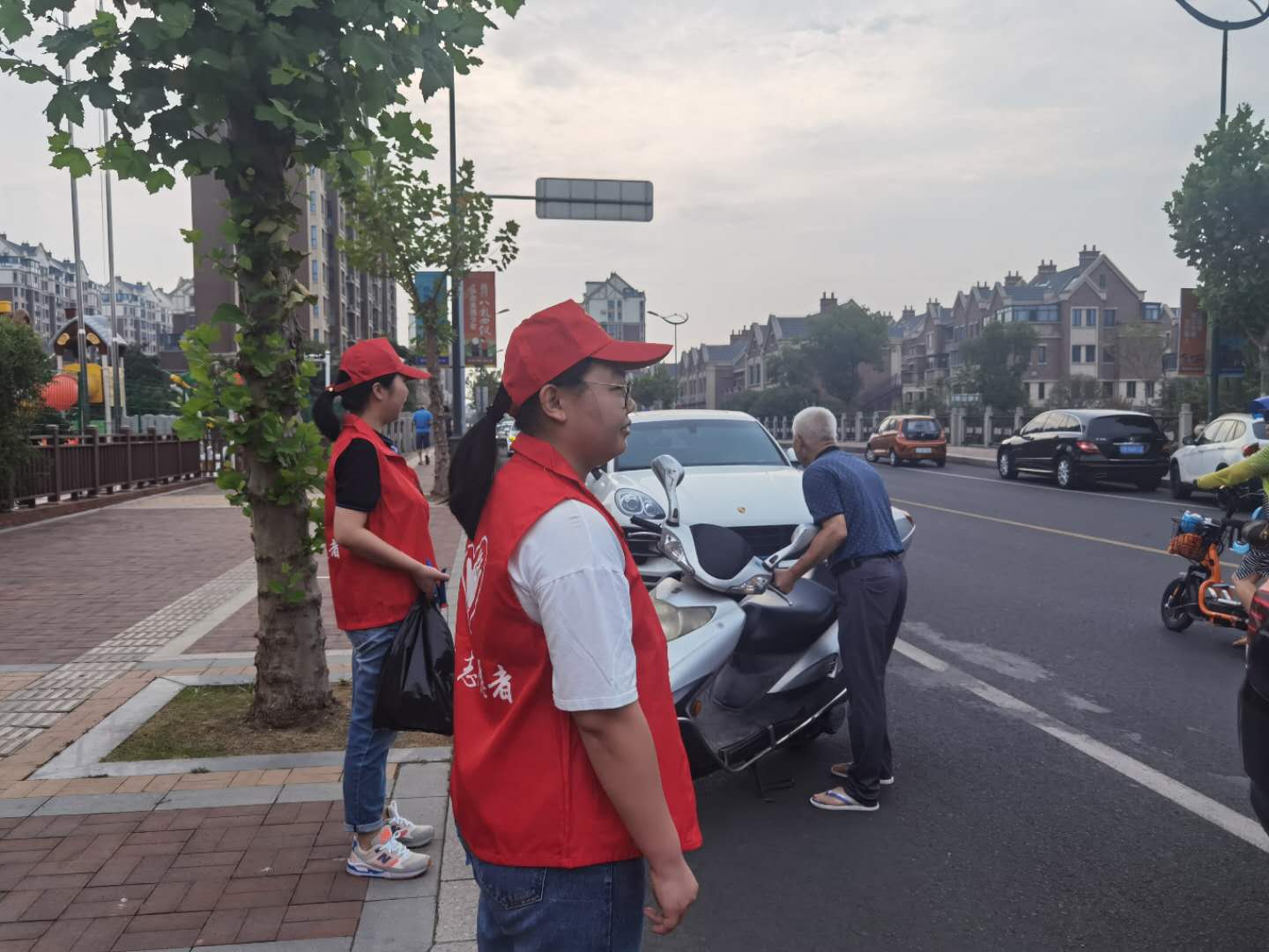 9月10日早八点,身着“红马甲”的蓝必盛志愿者们就来到交通繁忙的幼儿园门口,热情地在校门前马路指挥疏导交通,对车辆行人随意穿行等行为进行阻止和提醒,引导护送幼儿安全、有序过马路,传递文明新风。