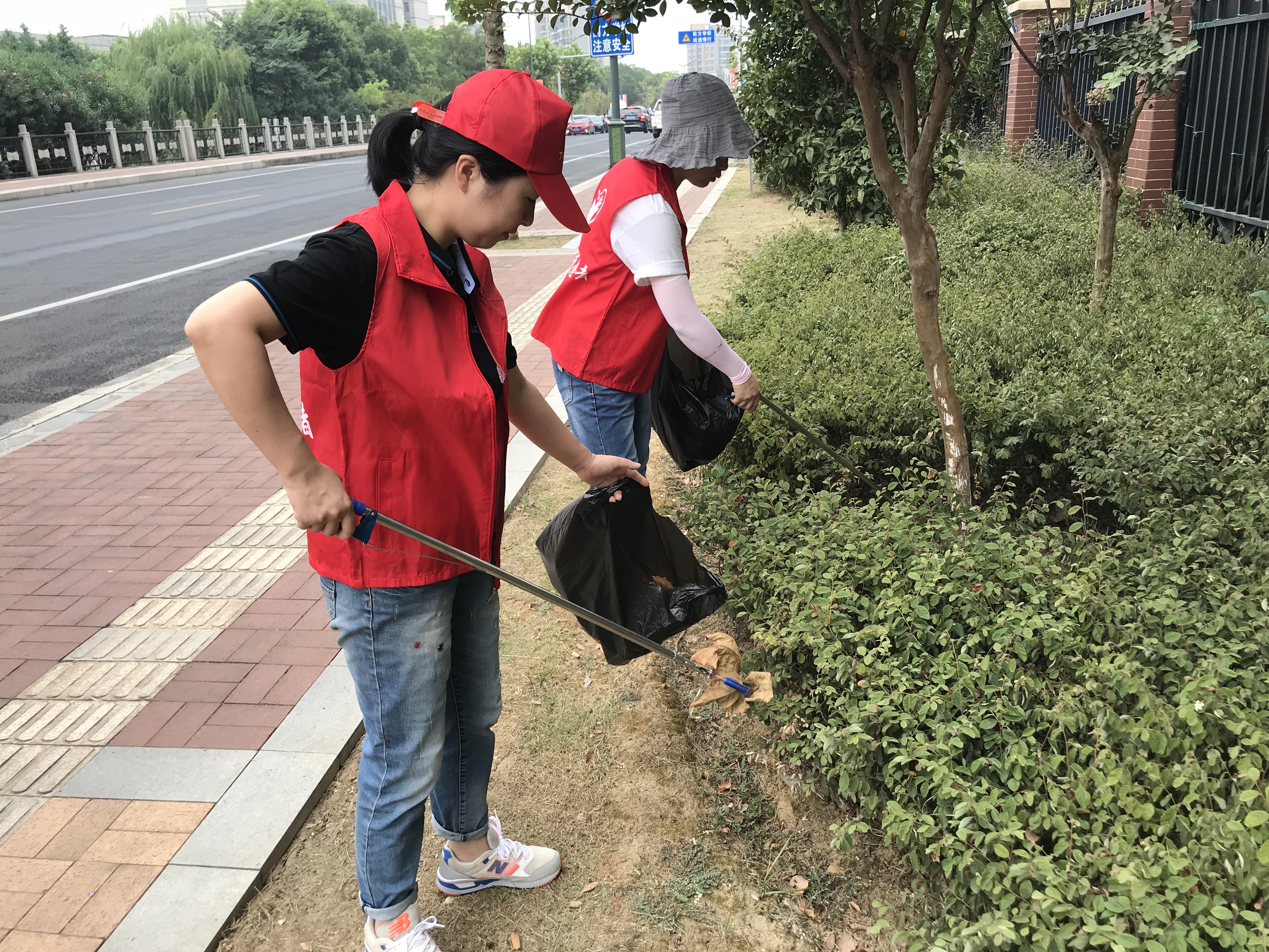 还有的蓝必盛志愿者深入道路一线,对公共环境卫生进行整改,他们手拿火钳、扫帚等工具,沿着道路两旁,认真地清理路面上的碎纸屑、饮料罐、烟头等垃圾。
