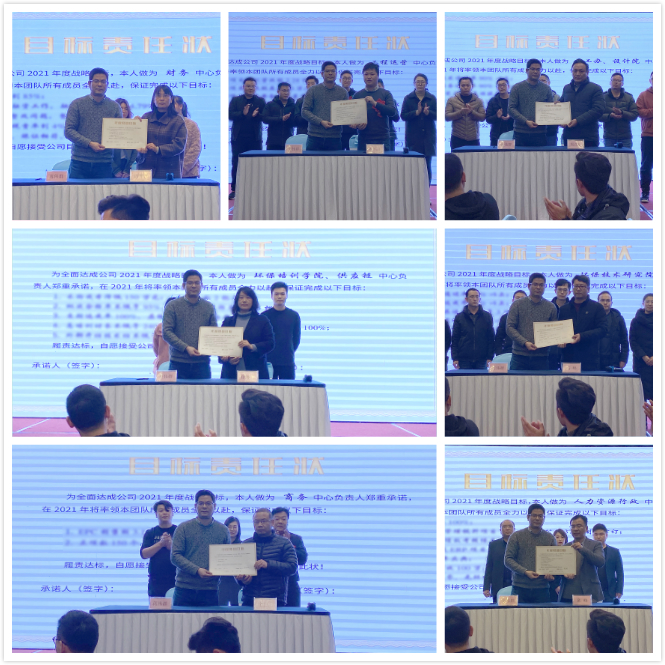 为推动2021年度公司年度经营目标的全面达成,充分调动各条线目标分解实现的积极性、主动性和创造性,强化管理实效与责任担当,蓝必盛董事长蒋伟群分别与各中心负责人签订了“2021年年度经营目标”。