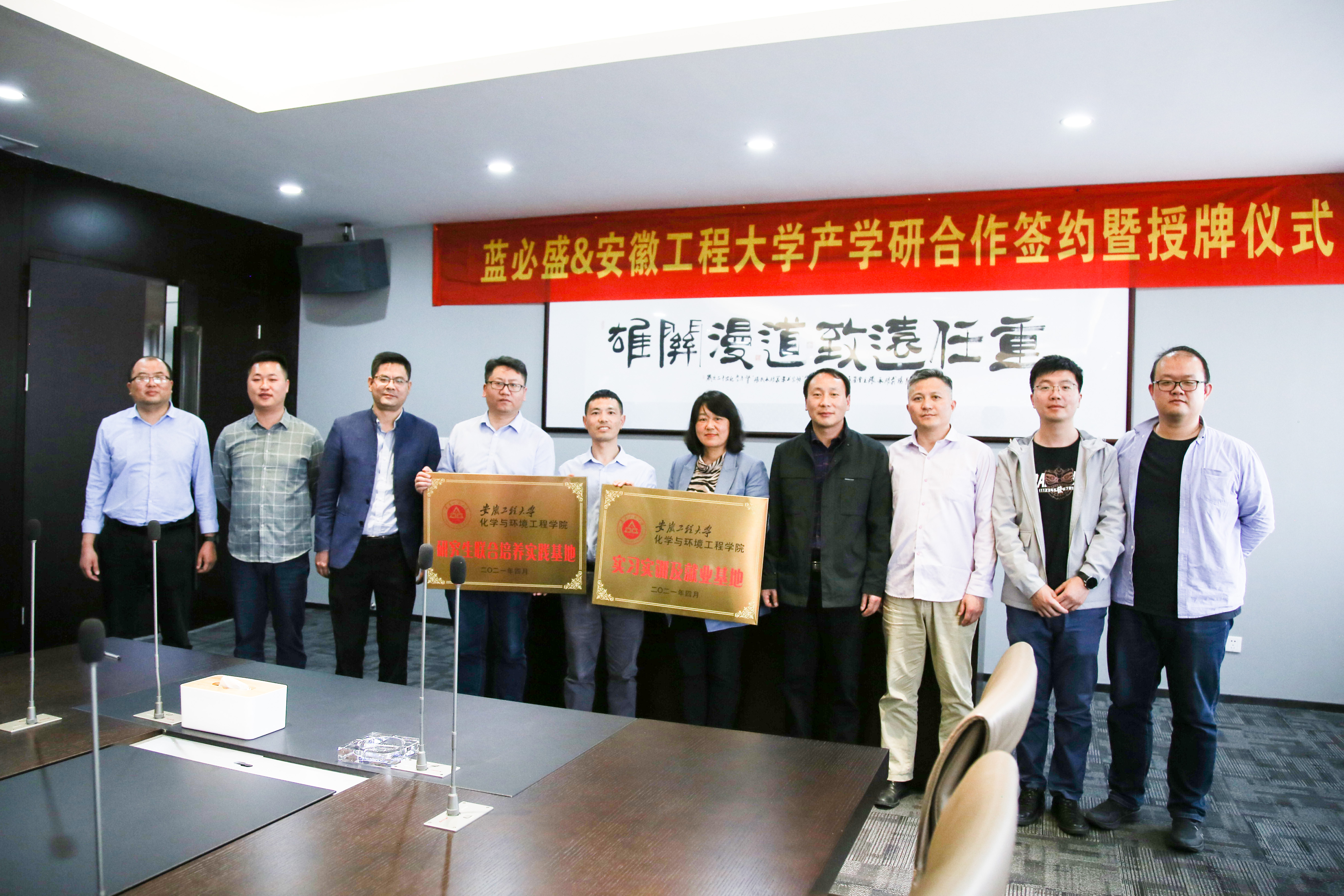 4月29日下午,蓝必盛与安徽工程大学化学与环境工程学院领导开展深度交流,并举行产学研合作签约暨“研究生联合培养实践基地”、“实习实训及就业基地”授牌仪式。双方将通过校企联合培养化工环保工程及技术型人才,进一步推动人才落地及科研成果转换。