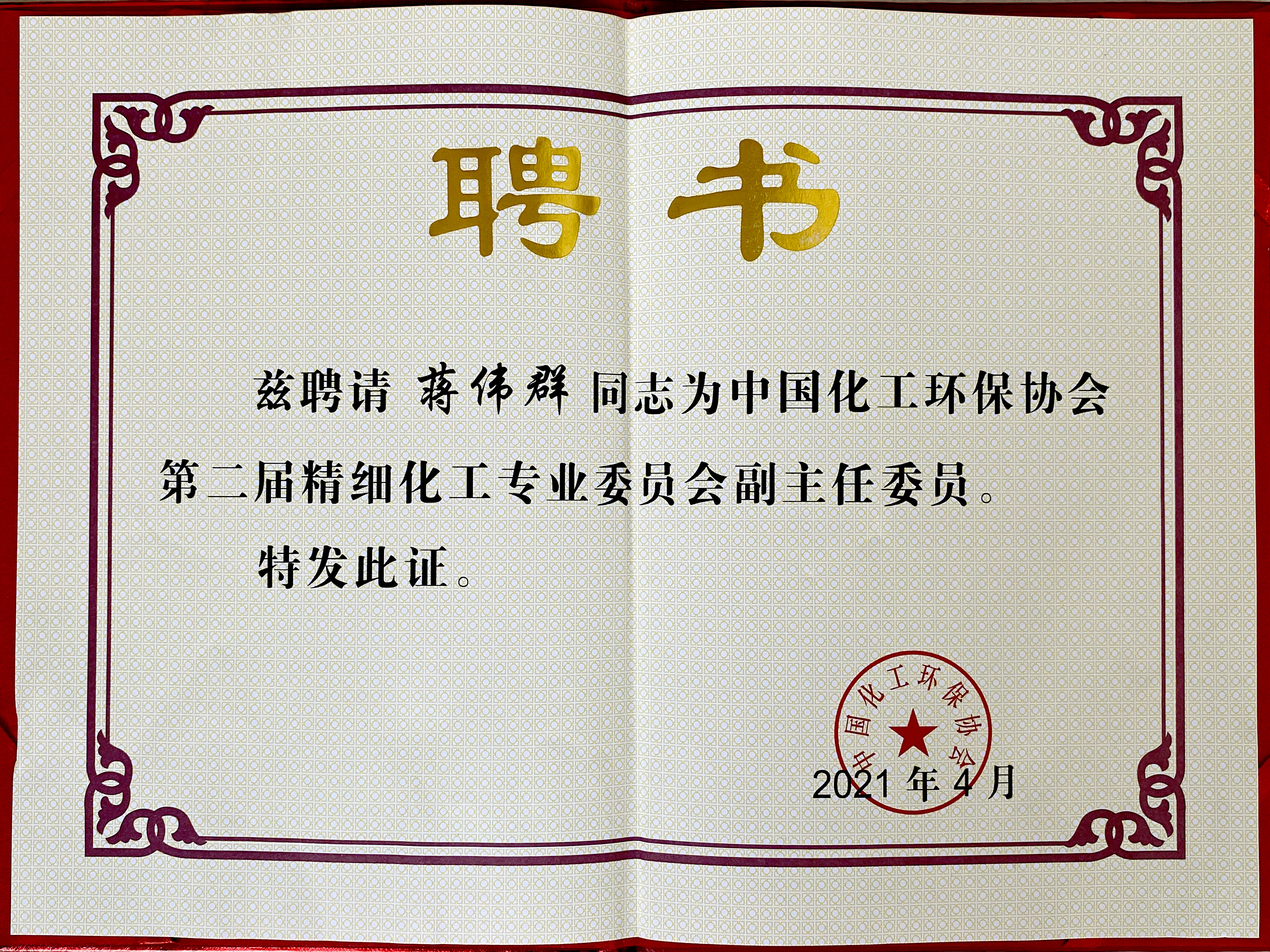 4月26日,在化工危险废物环境治理联合工作组、精细化工专委会、危险废物专委会工作会暨精细化工环保论坛上,中国化工环保协会理事长周献慧宣读聘请蓝必盛董事长蒋伟群为第二届精细化工专业委员会副主任委员的批复,并为蒋伟群董事长颁发了聘书。蓝必盛专注精细化工污染治理20年,积累100多项化工污染治理资源化与达标技术,可为精细化工企业提供循环经济、专业高效的技术支持和服务。