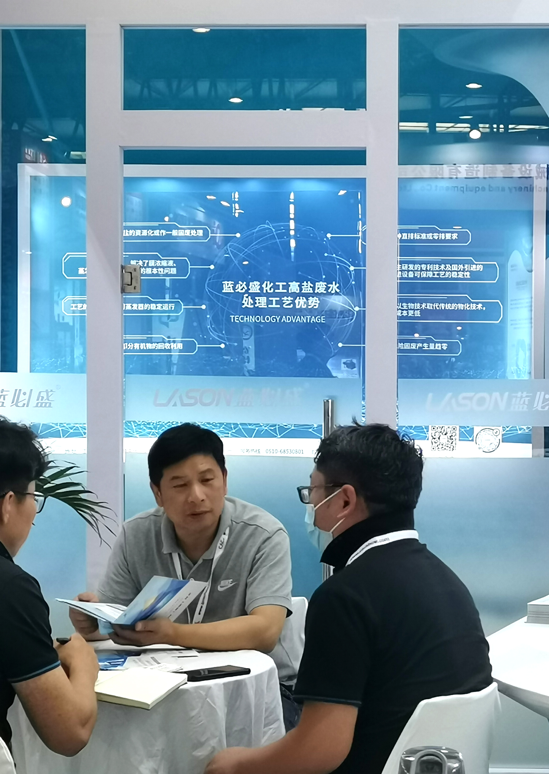 江苏蓝必盛作为环保行业专业的化工污染综合治理服务商,以简洁、大气的特装展位闪耀亮相E7馆H16展位,全方面展示了其“高盐农药废水治理零排放及资源化”技术及典型工程案例,依托蓝必盛自主研发的蓝碧清复合微生物技术、蓝必盛超高盐生化处理技术;热法分盐技术、膜处理技术、湿式氧化技术以及国外引进的AOP高级氧化技术等,可根据不同农药企业含盐废水特性进行处理单元技术的优化革新,拓宽生化技术处理高盐废水的维度,助力化工企业经济、高效实现水、盐资源化回收。本次展会期间,许多与会者及农化新老客户纷纷驻足蓝必盛展位,咨询了解其技术的特性、作用和效果,进一步详谈业务及项目对接。