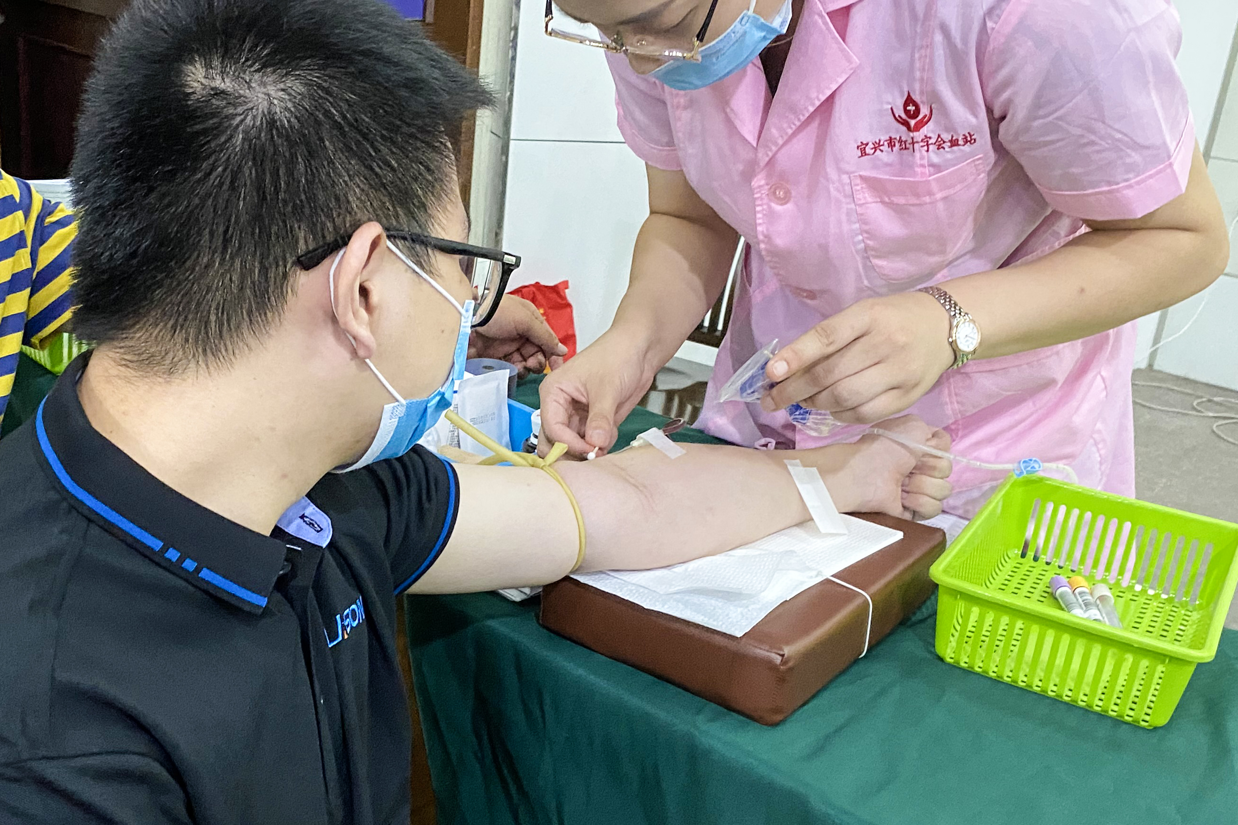 2021年随着疫情防控、疫苗接种等因素叠加,采供血一度受到了一定影响,用血资源紧张。红色七月,蓝必盛党员表率,党群一心,主动响应丁蜀镇无偿献血活动,为建设和谐社会贡献己力,心相连,血相融,用鲜红的血液化作生命的希望和温暖。