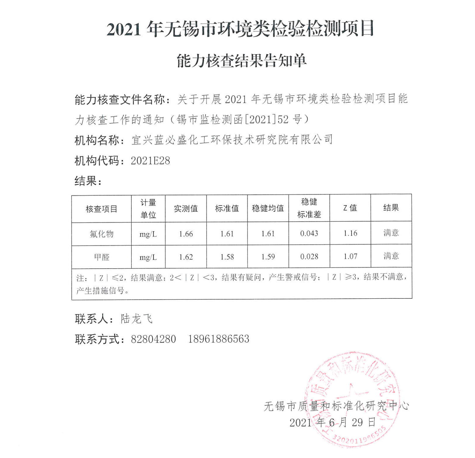 近日,蓝必盛旗下第三方检测机构——宜兴蓝必盛化工环保技术研究院有限公司参加了由无锡市市场监督管理局组织的“2021年无锡市环境类检验检测项目能力核查工作”。